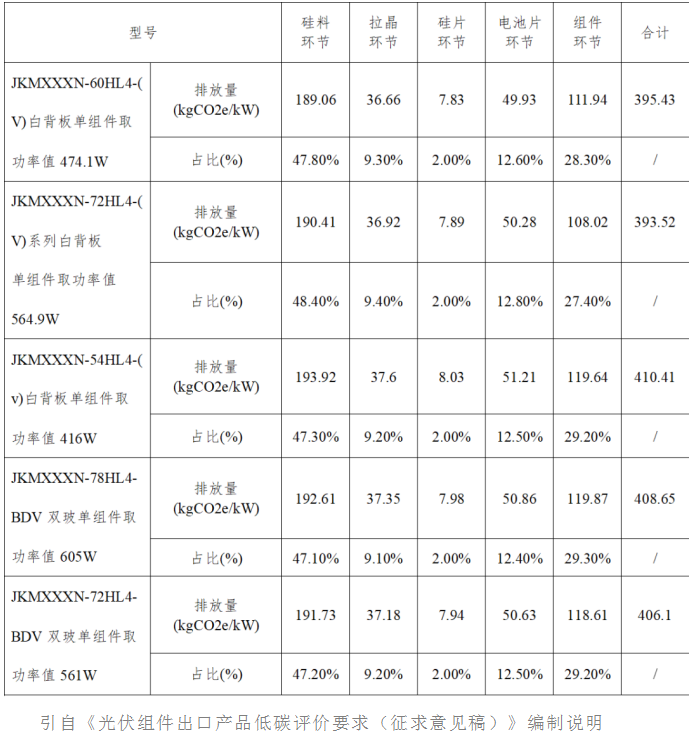 引自《光伏組件出口產品低碳評價要求(征求意見稿)》編制說明